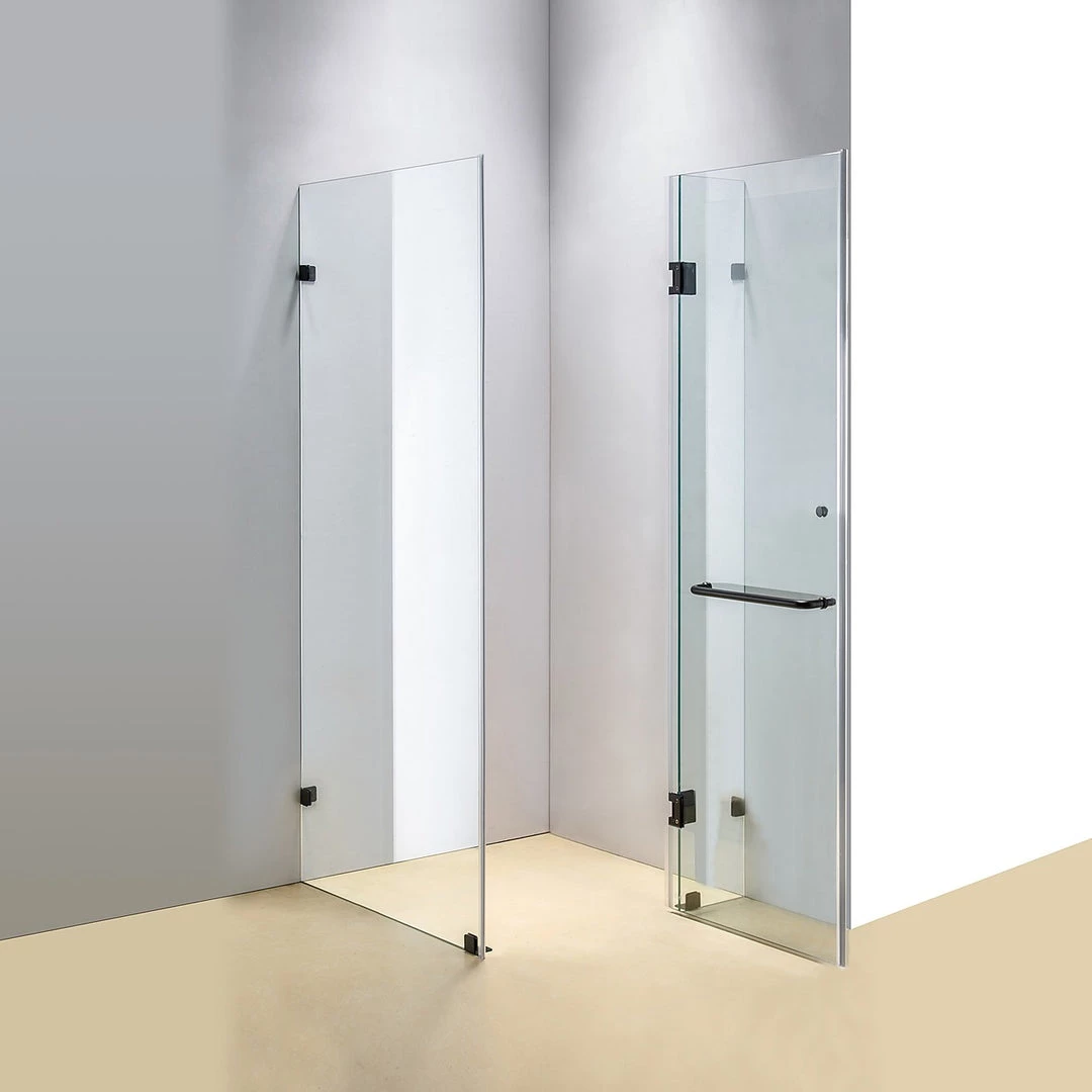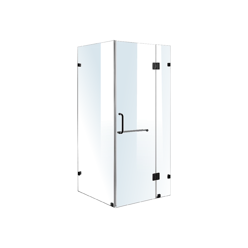 100 X 80cm Frameless 10mm Glass Shower Screen By Della Francesca BLACK Hinges/Brackets And ROUND Handle