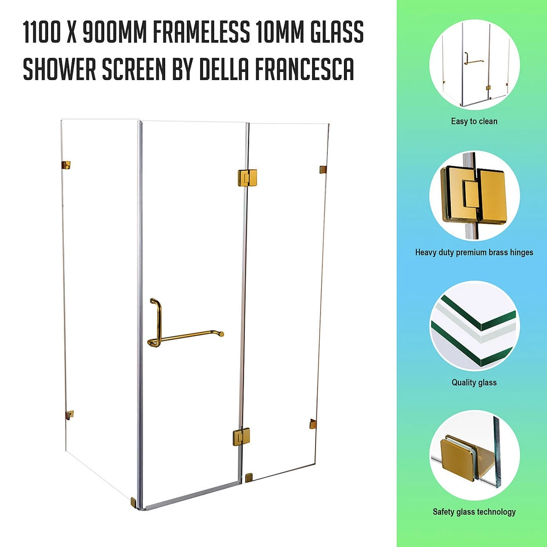 110 X 90cm Frameless 10mm Glass Shower Screen By Della Francesca GOLD Hinges/Brackets And ROUND Handle DIY & Renovation
