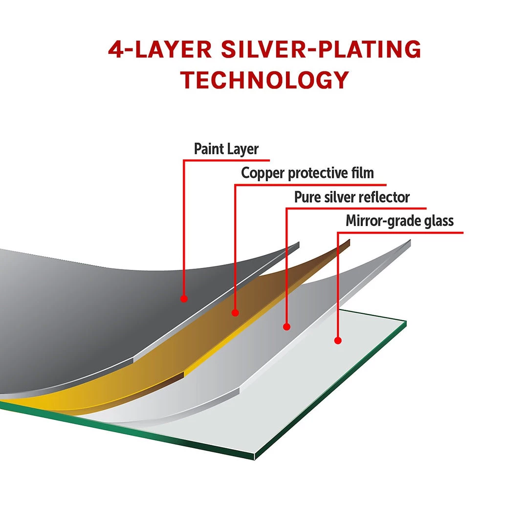 - Material: MDF, silver plating, high quality powder coated finish and mirror-grade glass