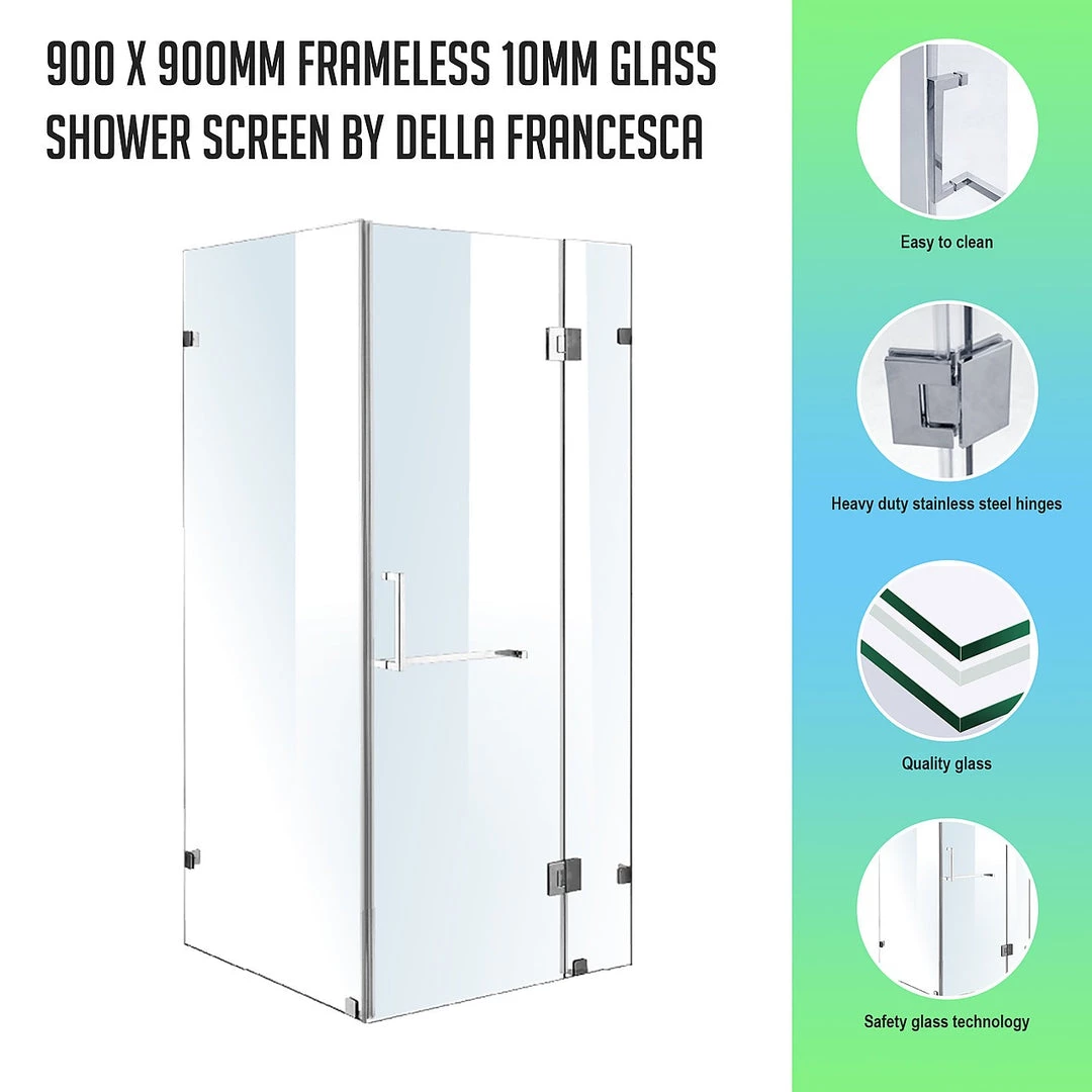 This Della Francesca square glass shower screen is a perfect combination of practicality and style. The quality floor strips ensure that no water leaks as you shower. Whilst the brackets won’t rust – even after continuous use.