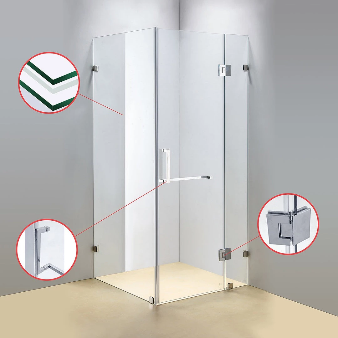 - Heavy duty hinges & brackets – Glass panels are secured by stainless steel brackets which are screwed into the walls and floor of your shower