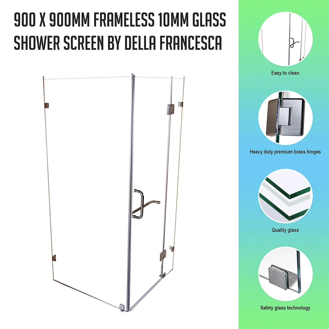 90 X 90cm Frameless 10mm Glass Shower Screen By Della Francesca Nickel Hinges/Brackets And Round Handle DIY & Renovation