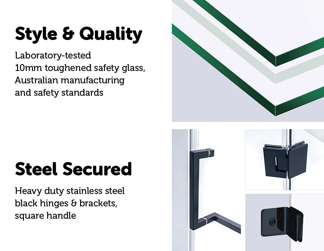 Quality glass – All glass panels are laboratory tested 10mm toughened safety glass, which meets the required Australian Standard AS2208.