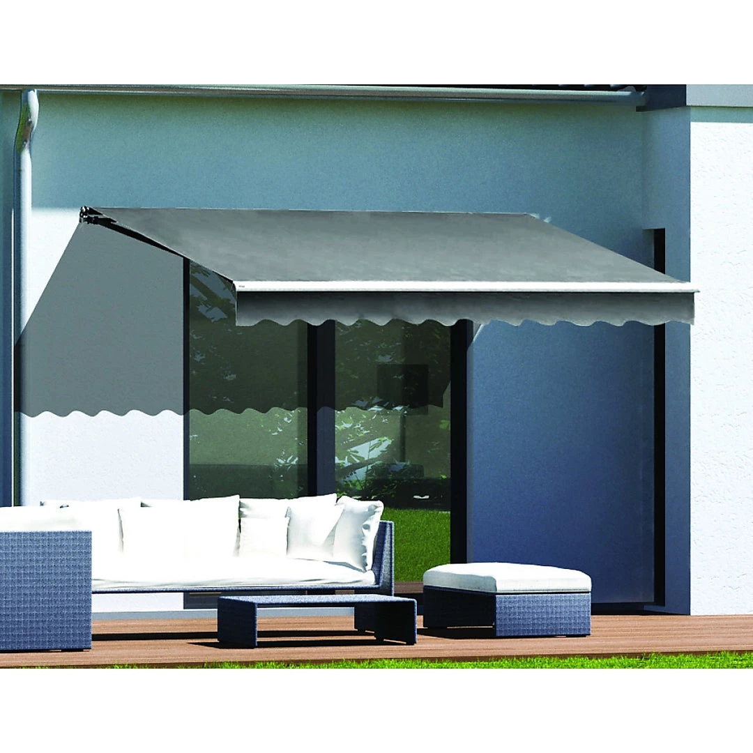This product’s neutral grey colour adds curb appeal to any home or even places of business. The scalloped trim in a lighter colour adds visual interest and texture and works equally well over windows, over patios, on balconies, or over sliding doors. Perfect for home or business, order your retractable folding arm awning today!