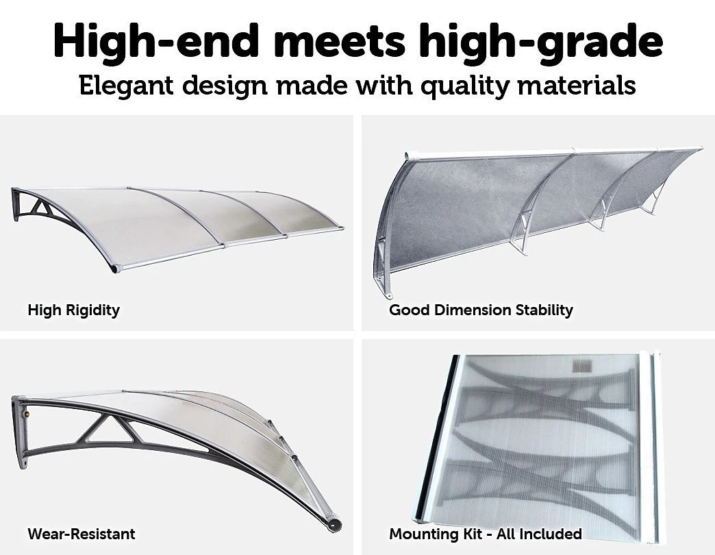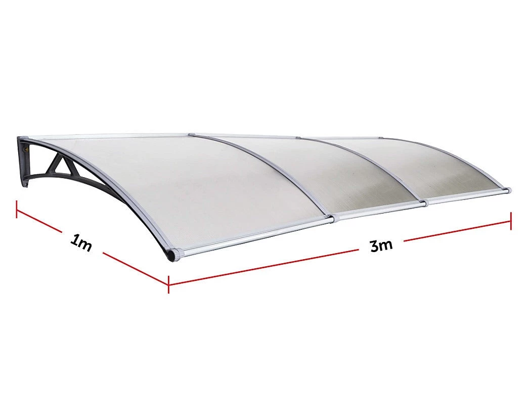 Our Deluxe DIY Outdoor Awning is made from clear 6mm thick polycarbonate material, which is durable and weather resistant. It features a rain gutter that directs water flow to the corner ends so you don’t get drips and water splatter all around. The brackets and fixing bars that attach the awning above the door or window are sturdy and rust resistant. You’re sure to get years of worry free protection from the elements.