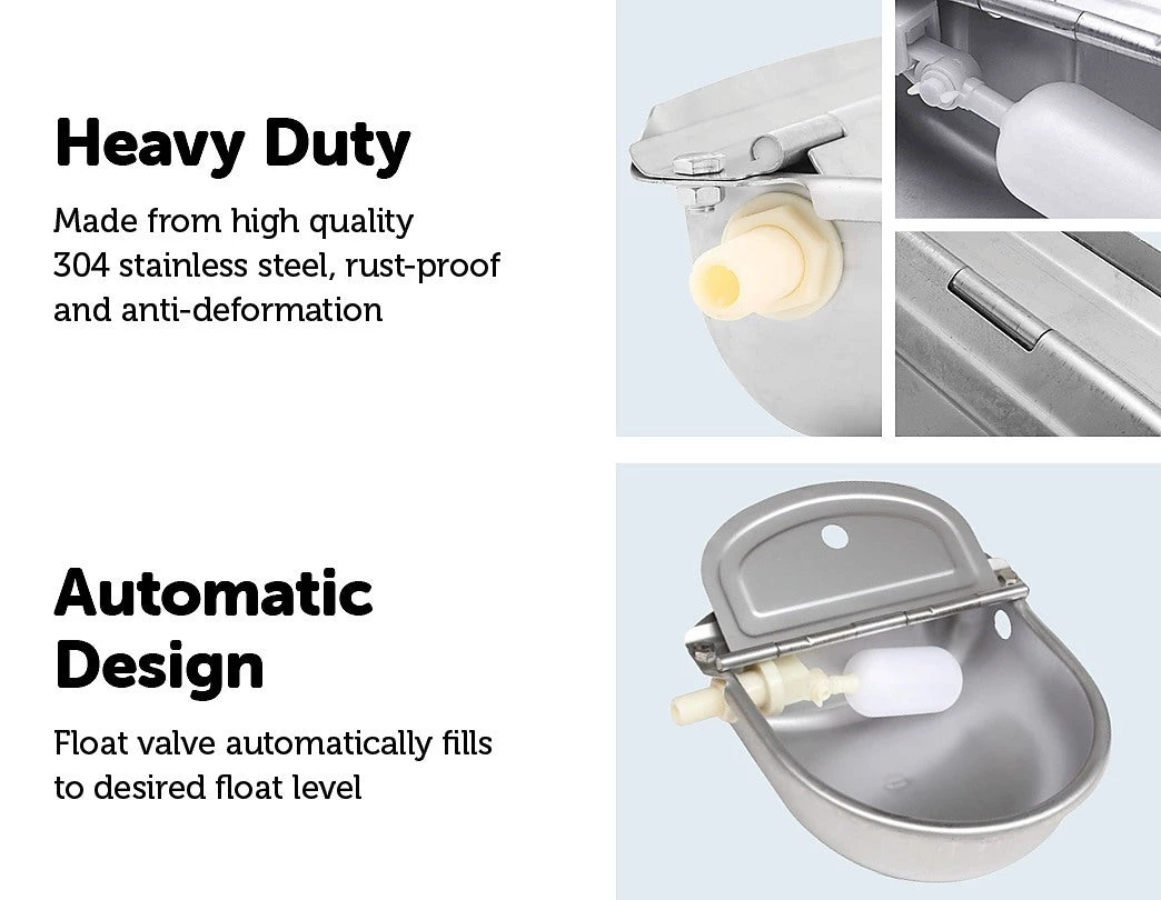 Provide a continuous and reliable source of fresh water for your animals with our automatic stainless steel water trough. This drinking bowl comes equipped with a plastic float mechanism.Â