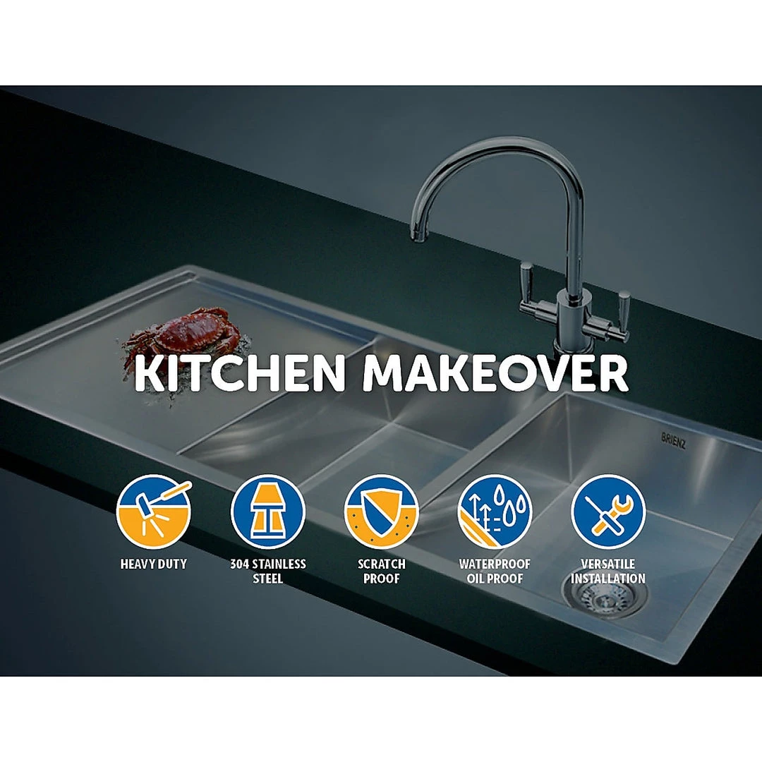 Crafted from 1.2mm thick stainless steel, this 1160x460mm Double Bowl Stainless Steel Sink with Round Waste easily stands up to the wear and tear caused by frequent. It’s even fully coated to dampen any noise, making it ideal too for apartments or shared properties. Both drains have built-in self-closing plugs, and the outside of the sink is fully coated to dampen noise and prevent water drumming.