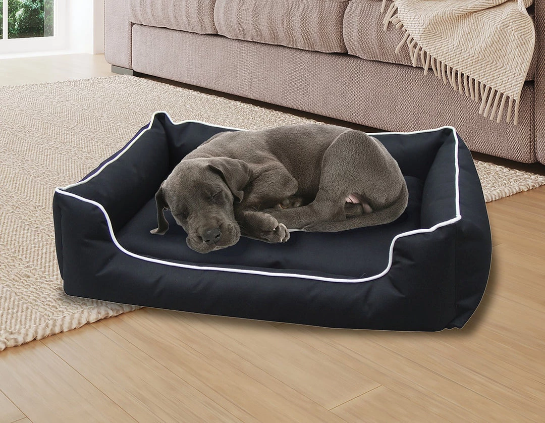 Made from high quality Oxford canvas, our Heavy-Duty Dog Bed is soft and comfortable but tough enough to withstand the playful antics of an active pup. It is water proof and suitable for outdoor use or with its handsome black and white colour scheme, perfect for indoor use as well.