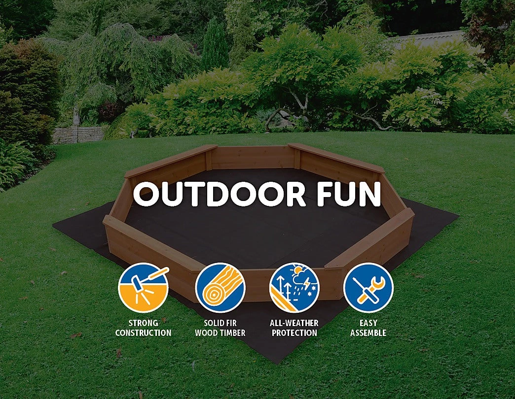 Our Kids Large Octagonal Wooden Sandpit makes the ideal toy for summer. Made from FSC Certified Timber, the sandpit also comes equipped with bench seats which can accommodate at least four children at a time.