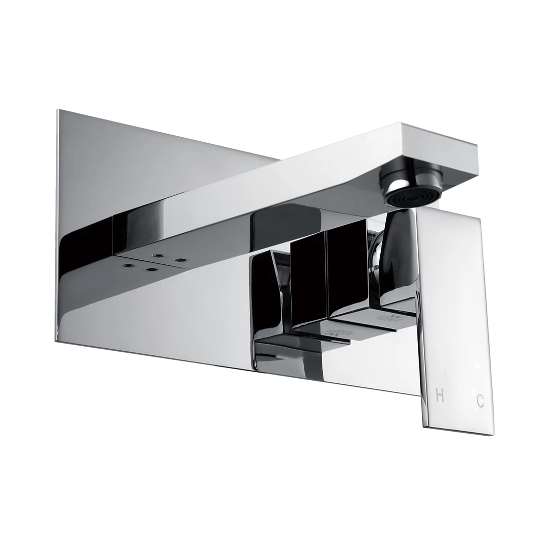 The clean straight lines of this basin mixer, lever and back plate — along with a brilliant chrome finish — are ideal for any modern bathroom. The accessory has a height of 100mm and a width of 220mm. The tap extends out 173mm.