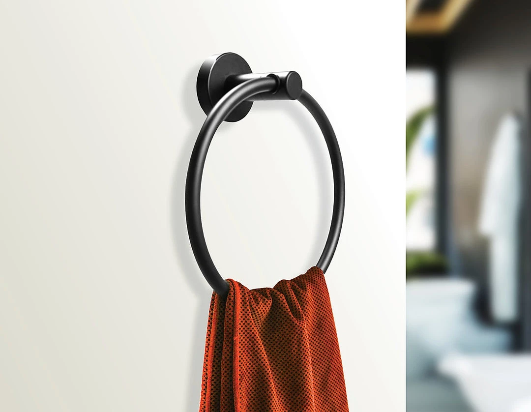 This gorgeous Towel Ring comes with an elegant electroplated matte black finish that will add a touch of class to any bath. It is designed to be affordable, yet durable and high-quality. The sturdy design ensures that this towel ring will last, and the sleek design will fit into any bathroom without any hassles.