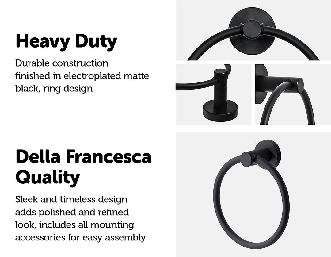 If you’re looking for an alternative to the traditional towel bar, Della Francesca has just that. They have produced a high-quality Towel Ring with an electroplated matte black finish. You can’t beat this price, so why not purchase a few of them at once?