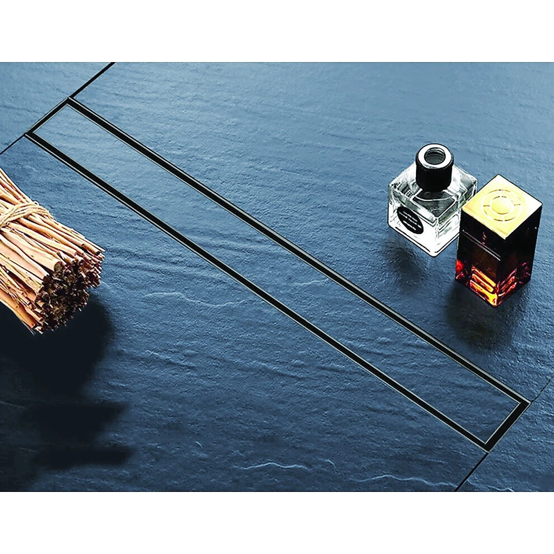 Create a seamless and continuous look to your floor area while effectively directing water-flow towards the centre drainage outlet to keep surrounding areas dry. The 80cm Tile Insert Black Linear Grate is perfect for the bathroom, shower, kitchen or outdoors – like your pool or patio area.