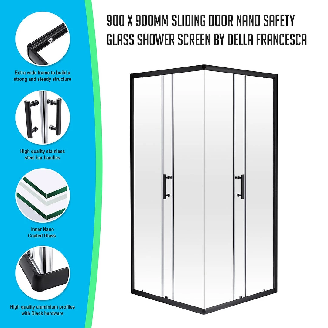 This lovely sliding double-door is sturdy and durable and is waterproof guaranteed. Its frame features magnetic seals and high-quality Black hardware. There are no worries about rust as the hardware that comes with the door is high-quality stainless steel. The accompanying side panel features a universal fitting that allows for right or left-hand installation with an 18mm out of true wall adjustment.Â