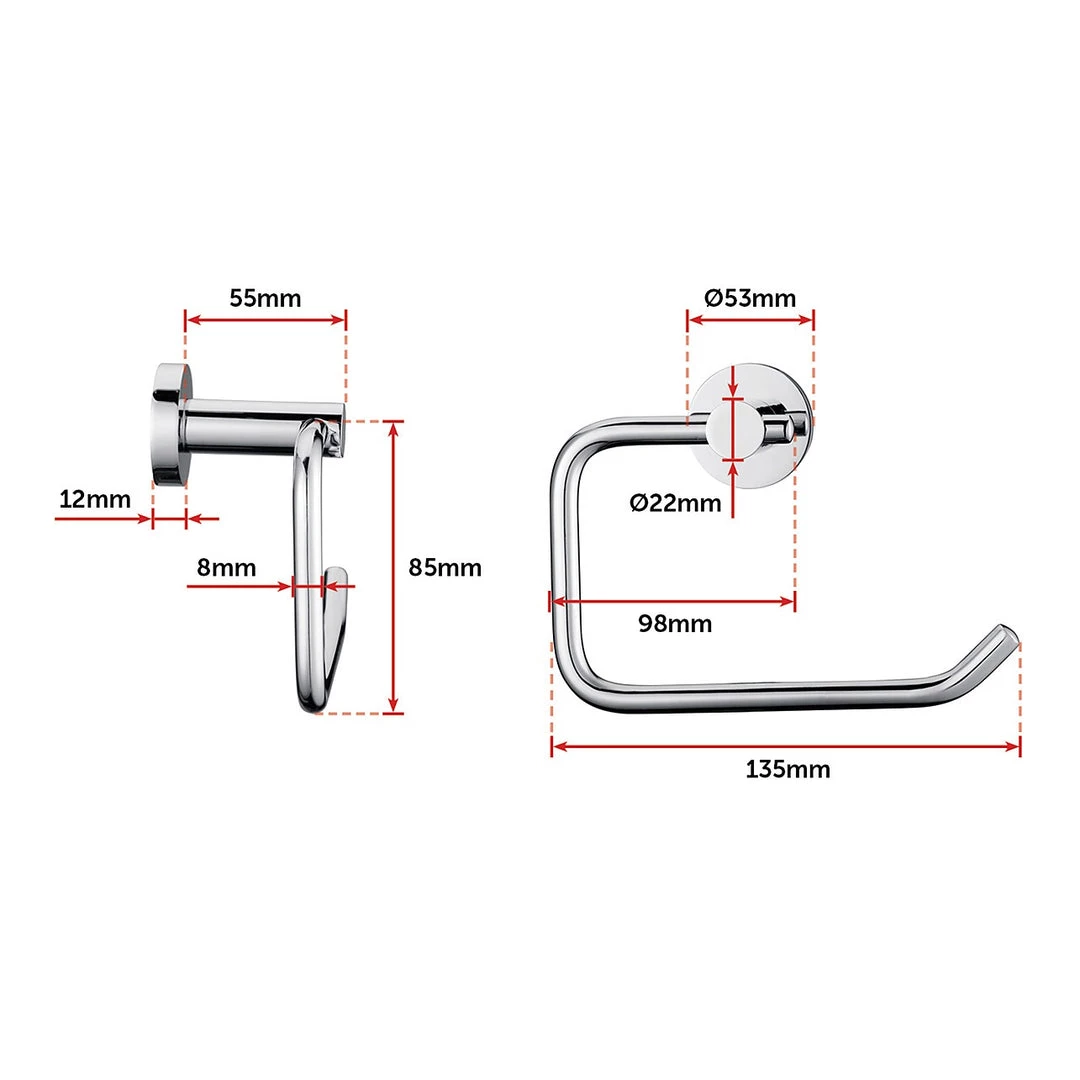 This toilet paper holder has a brilliant chrome finish. A simple hook design keeps the toilet paper on the holder without the need for a spring roller. A modern sleek design is built to last and updates any bathroom.