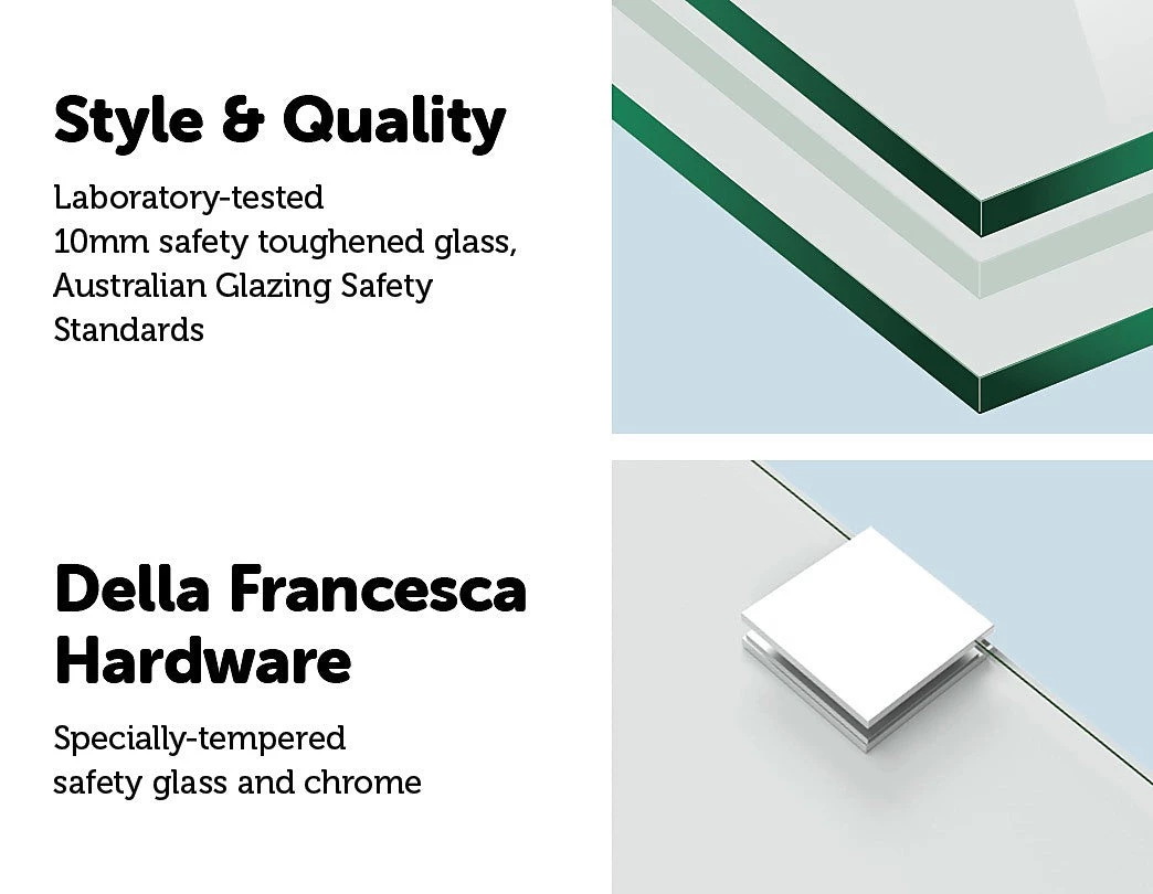 Della Francesca takes pride in manufacturing only the highest quality shower screens that are designed to not only be a focal point of your bathroom but also retain their appeal and functionality over many years of family living. Frameless shower screen – give your bathroom a modern, luxurious, stylish and spacious look!
