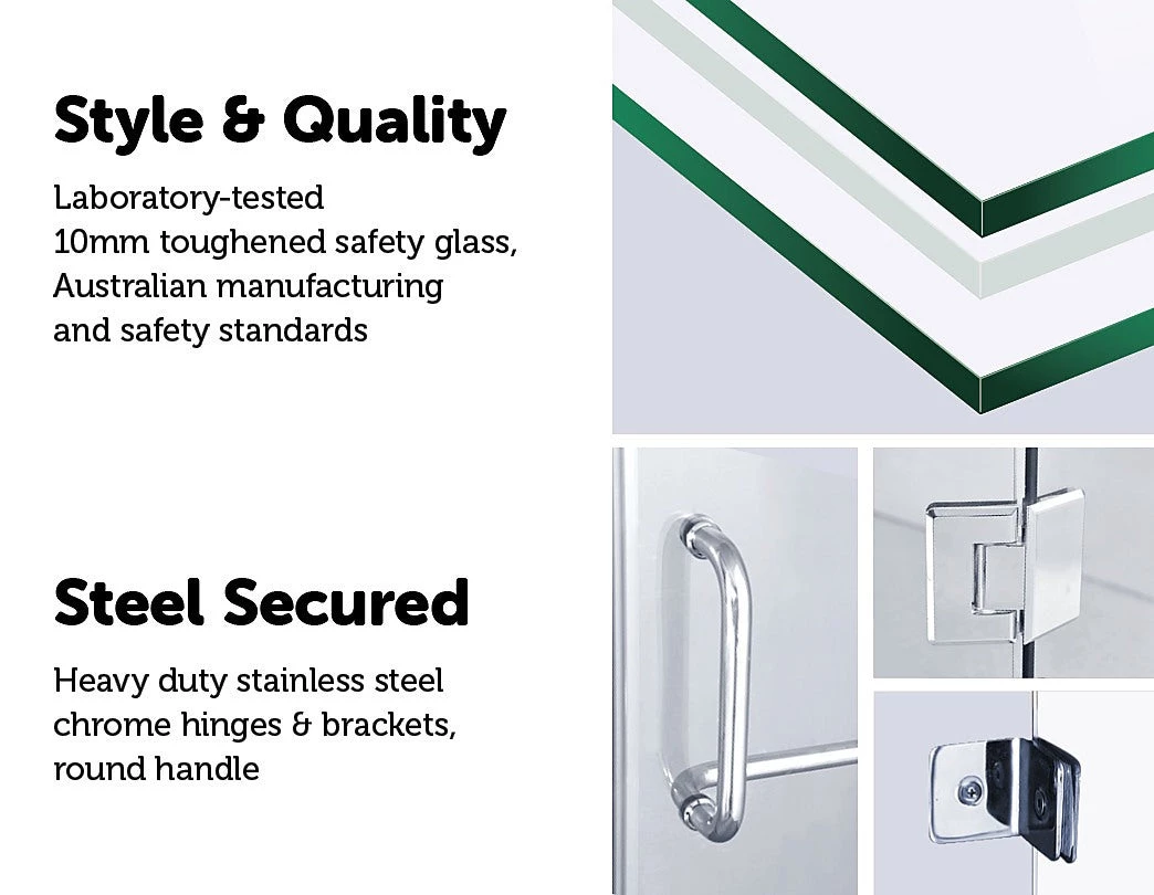 Quality glass – All glass panels are laboratory tested 10mm toughened safety glass, which meets the required Australian Standard AS2208.