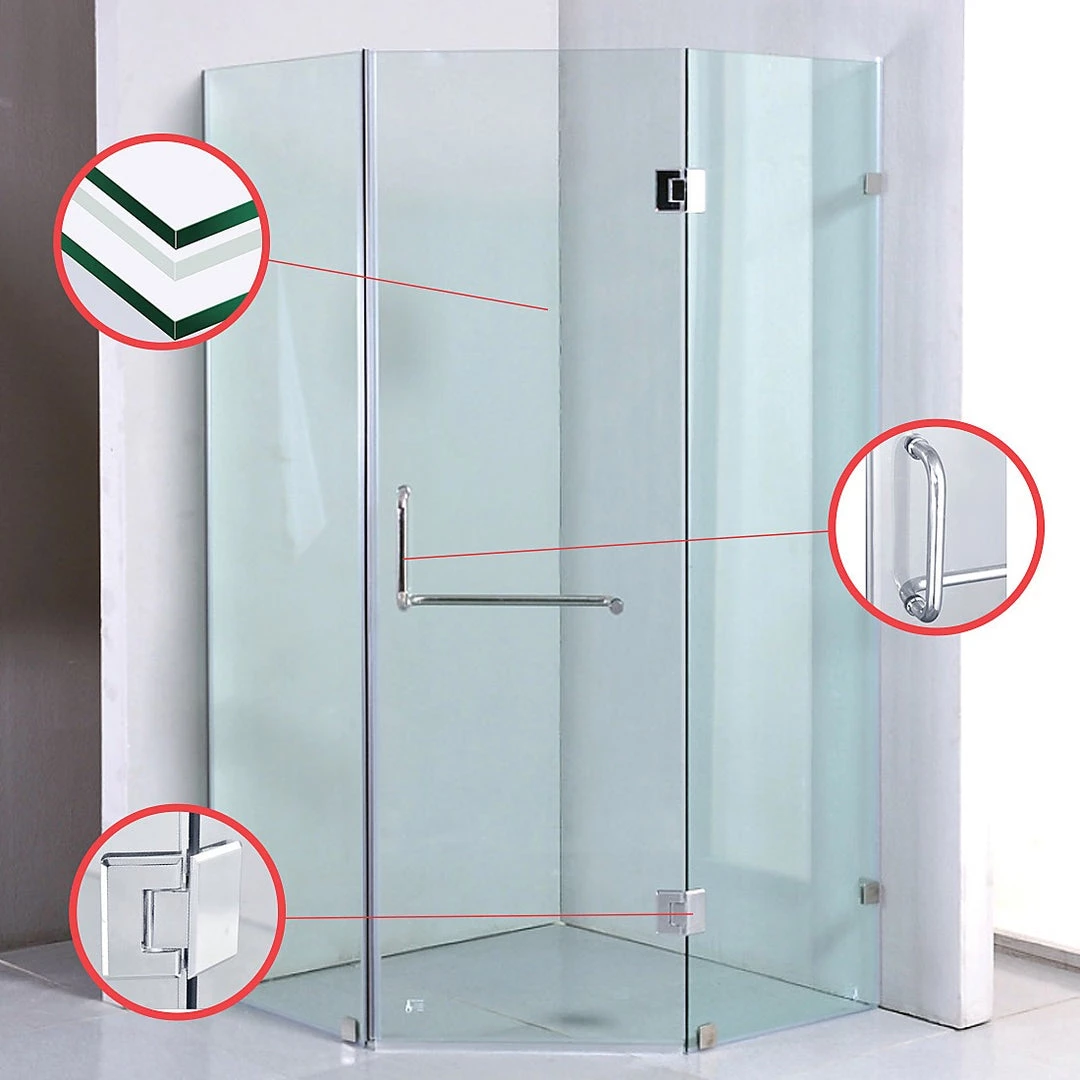 - Heavy duty hinges & brackets – Glass panels are secured by brackets which are screwed into the walls and floor of your shower and wont rust or chip