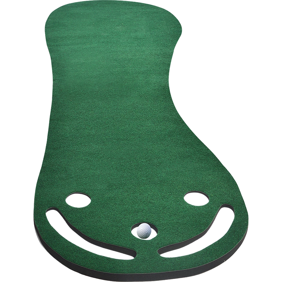 Practice your stroke on the kidney-shaped putting green. The green gives you three cups to aim at, giving you plenty of practice targets, while the built-in sand traps are designed to catch any missed shots. In addition, this green offers a high-quality putting surface designed to stay smooth over time.Â