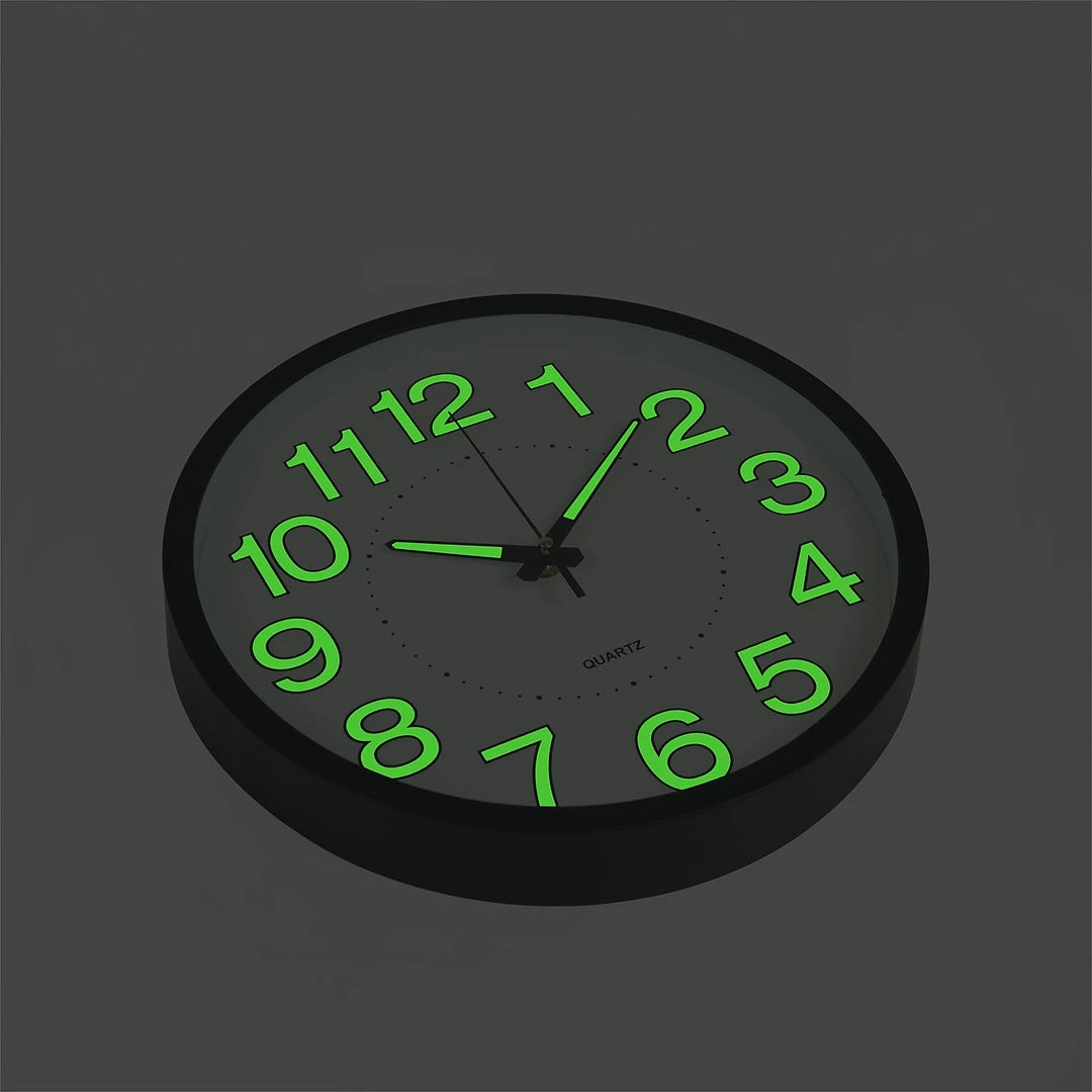 During the day, the coating on the numbers and hands absorb the sunlight or room lighting. At night, the clock emits that stored light, making the hands and numbers glow. To increase the brightness, make sure to increase its exposure to light during the day. Four to eight hours is usually enough to absorb enough light to glow all night long. It makes a great wedding, birthday, housewarming, or holiday gift as well. Always know what time it is, day or night, without having to glance at your cell phone. Order your wall clock today!