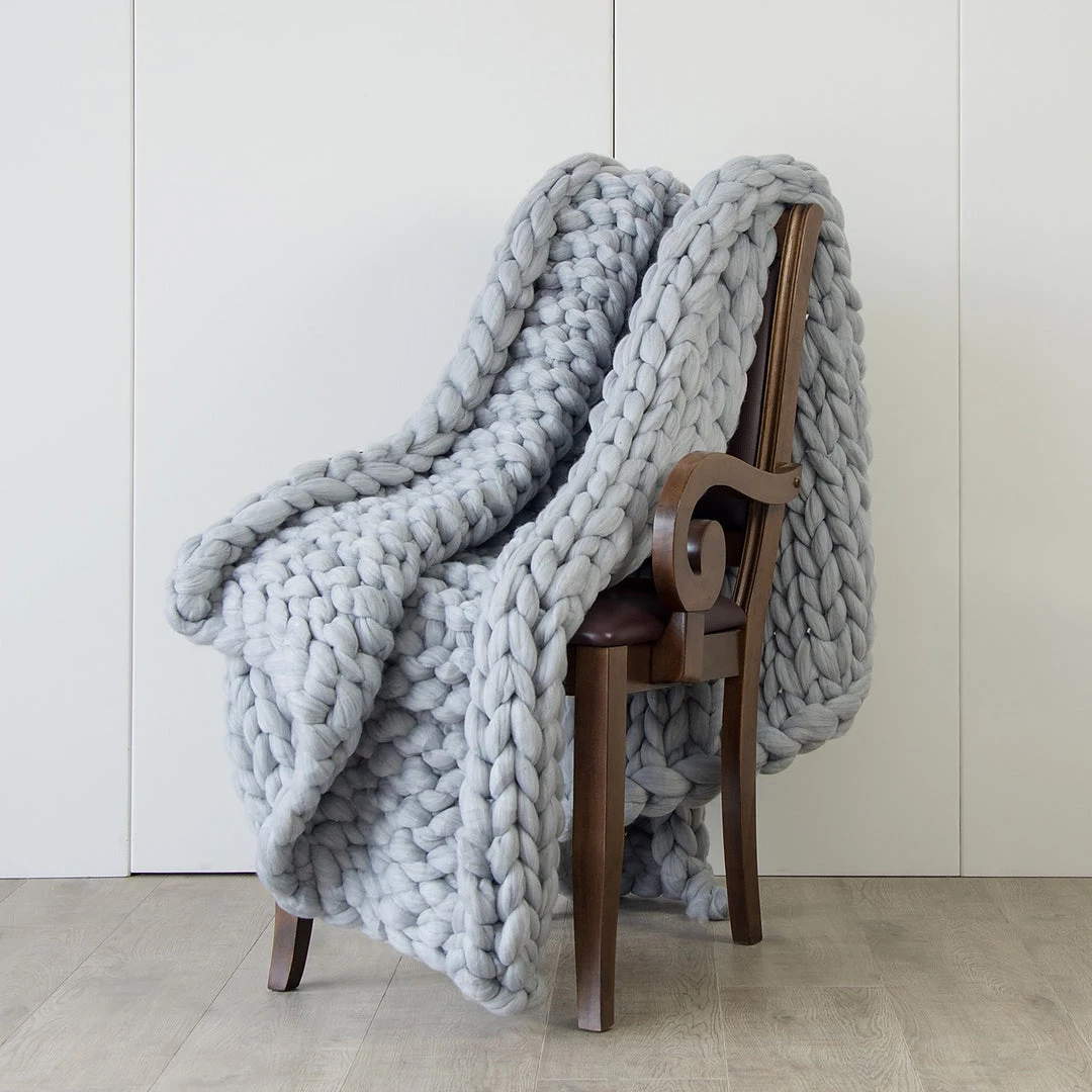 Take the chill off those autumn and winter evenings with this comfy hand-knitted throw. Crafted from thick, warm yarn in a gorgeous Grey, it will blend in beautifully with almost any colour scheme. And, draped casually over a sofa, chair, or bed, it lends a cosy, homespun vibe to whatever room it’s in. Wrap yourself in its warmth and curl up with your favourite book or binge-watch your current TV obsession. It’s your invitation to relax. Simply add a glass of wine or a pot of tea and you’ll be in your Zen zone in no time.