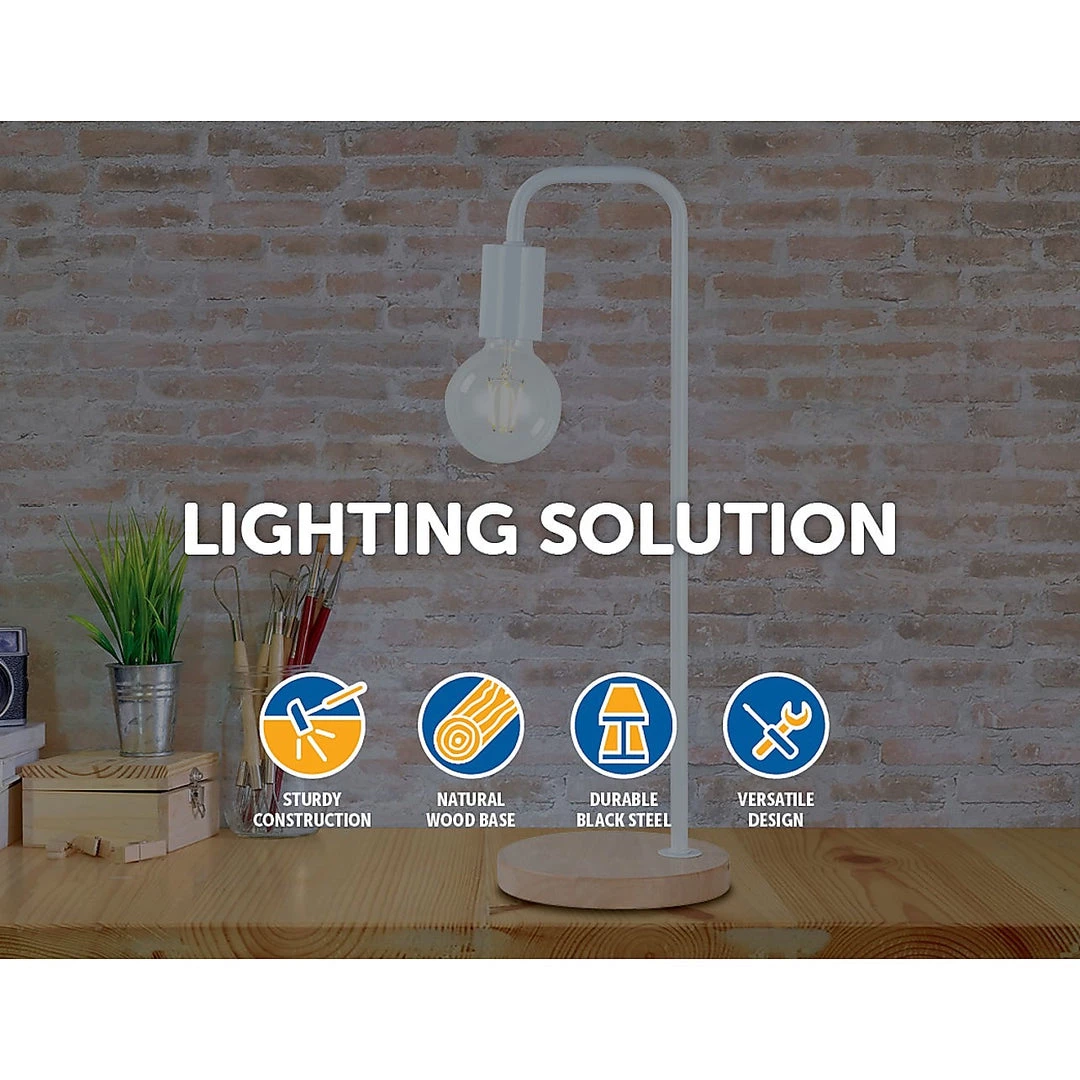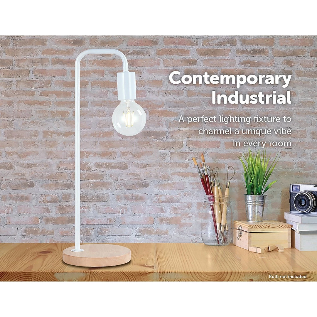 This lamp is the perfect addition to your desk, study, or bedroom with a gooseneck arm crafted from durable White steel and a natural wood base.