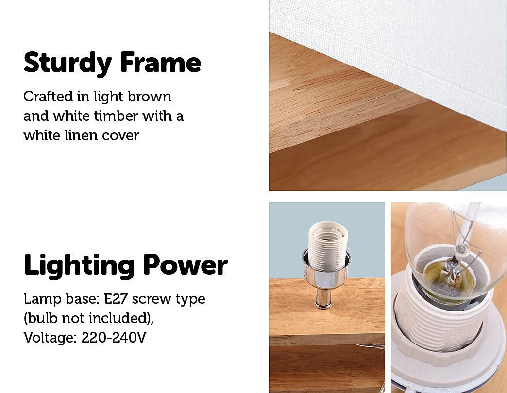 When you want a bedside light with a sleek, contemporary design, this wooden bedside table lamp by Palermo is the perfect choice. Crafted in light brown and white timber with a white linen cover, this lamp lightens and brightens your room and puts out plenty of light for reading or writing.