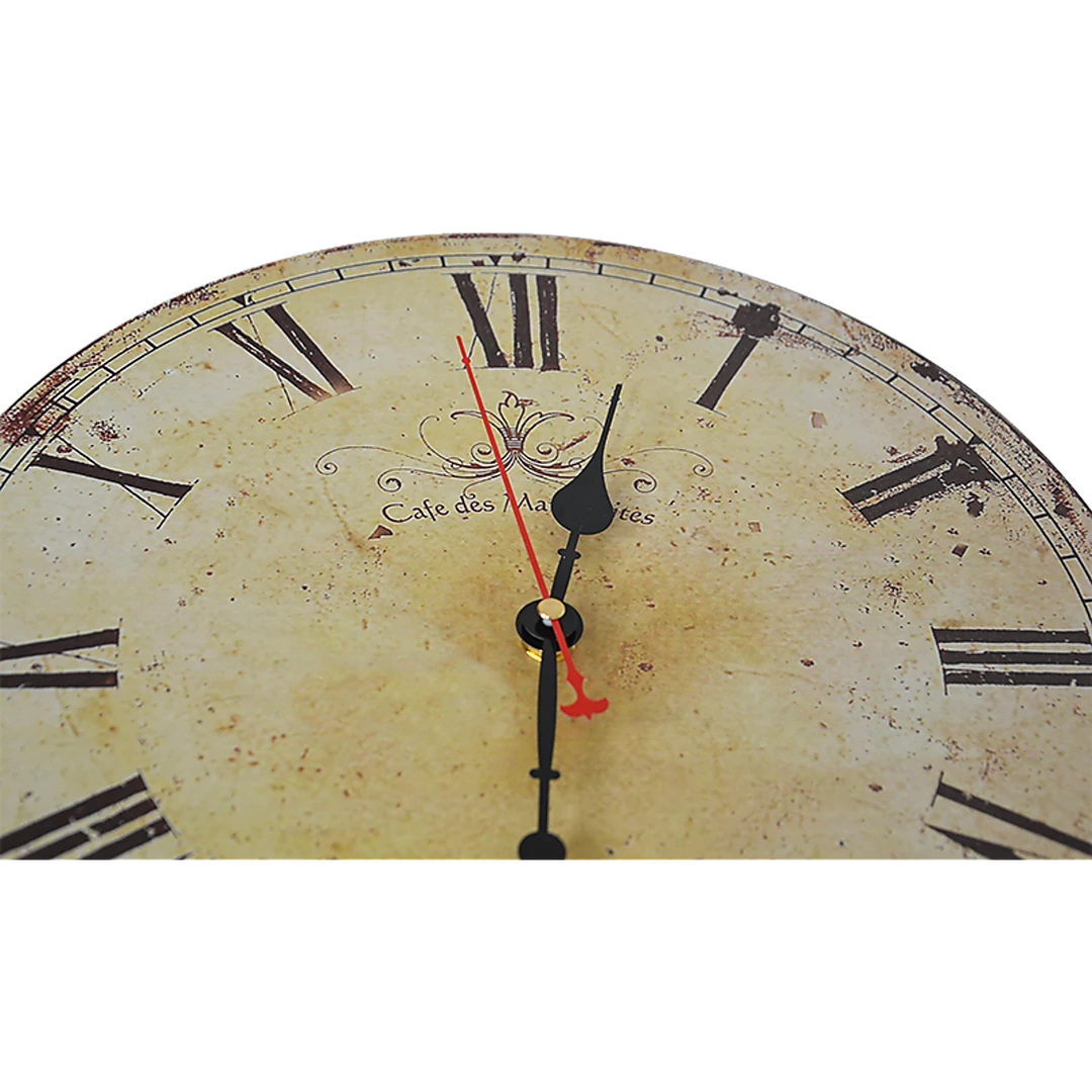 Crafted from high-quality MDF and manufactured wood, this clock is as durable as it is beautiful. With this timepiece, you get Old-World charm with modern dependability. Its French inscription, ‘Café des Marguerites’ turns your room into a French café from yesteryear. Hand-crafted by traditional artisans, no two are alike. Its character and heirloom quality make it a piece your family will treasure for generations.