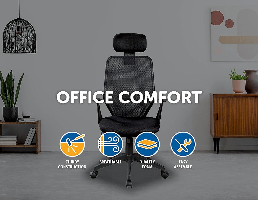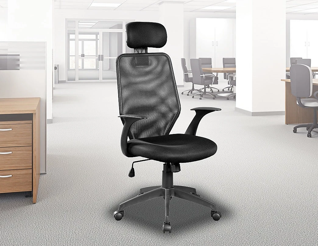 Made with black mesh, the chair offers superior comfort, ergonomic back support and no-fuss maintenance. It features gas lift height adjustment to ensure proper sitting posture that promotes spinal health. The handsome base is supported by 5 nylon caster wheels that rotate 360 degrees to ensure smooth mobility across the floor.