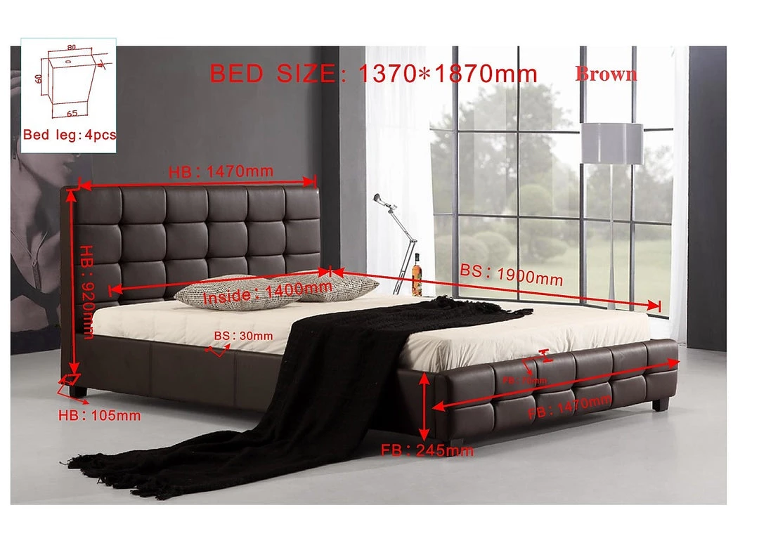 The wooden frame of our Double Deluxe Bed Frame in Brown PU Leather is easy to assemble, exceptionally sturdy, and will support your mattress for many good night sleeps to come with static loading capacity of 200kg.