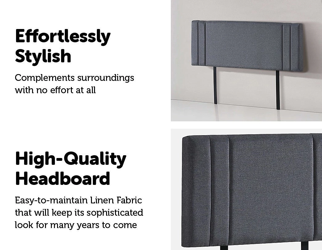 This headboard for Australian standard Queen-sized bed frames is created with quality materials, including easy-to-maintain linen fabric that will maintain its sophisticated look for many years to come. This particular model comes with two elegant stitching accents on each side that provide just the right level of understated pop. A neutral Grey will blend seamlessly with a wide variety of bed frames and other bedroom furniture.