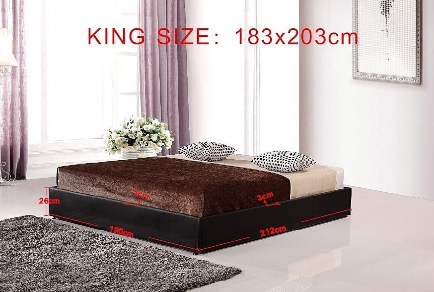 Our PU Leather King Bed Ensemble Frame is exceptionally stylish, versatile, and supportive of your mattress. The frame is good value for money, and – alongside being a durable piece of furniture – will likely match your bedroom decor whatever you wish to do with it.