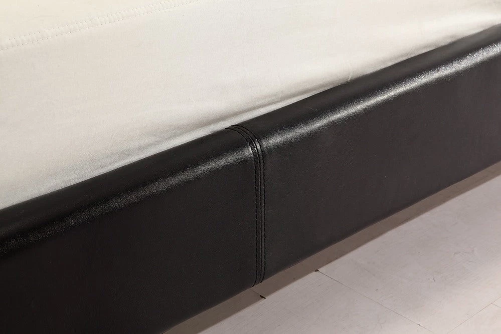 Both headboard and frame are draped in a stylish Black PU Leather covering. It’s easy to clean, attractively stitched, and will easily complement most bedroom decor or colour schemes.
