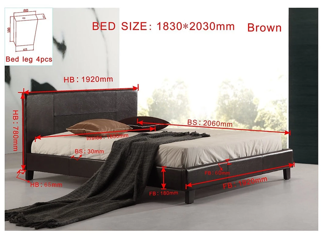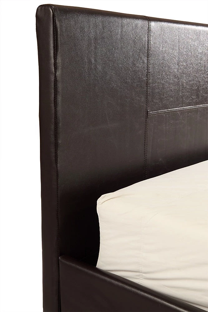 Both headboard and frame are draped in a stylish Brown PU Leather covering. It’s easy to clean, attractively stitched, and will easily complement most bedroom decor or colour schemes.
