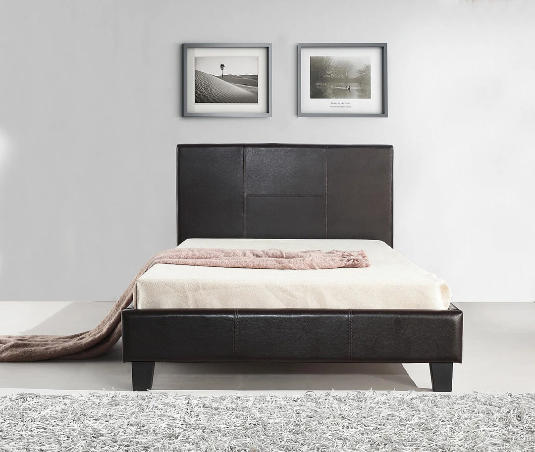 Both headboard and frame are draped in a stylish Brown PU Leather covering. It’s easy to clean, attractively stitched, and will easily complement most bedroom decor or colour schemes.