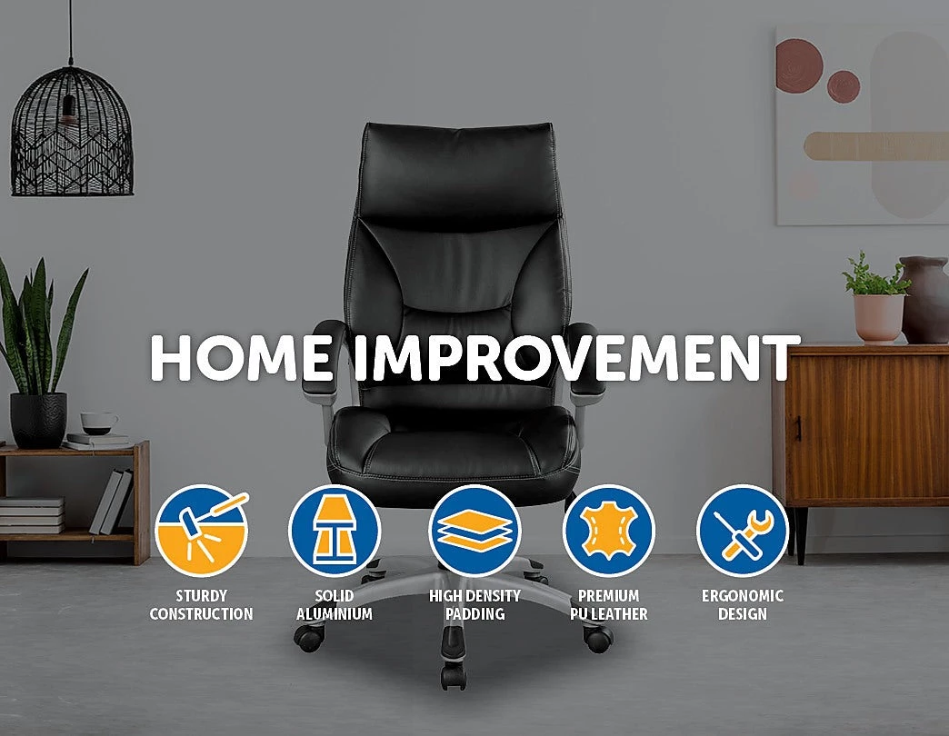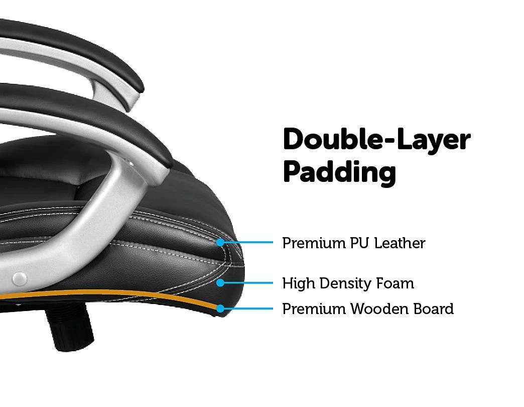 The executive office chair features independent gas lift height adjustment and tilt adjustments that you can use to ensure your hips are aligned and both feet are planted firmly on the floor – maintaining proper sitting posture is important to reduce body fatigue.