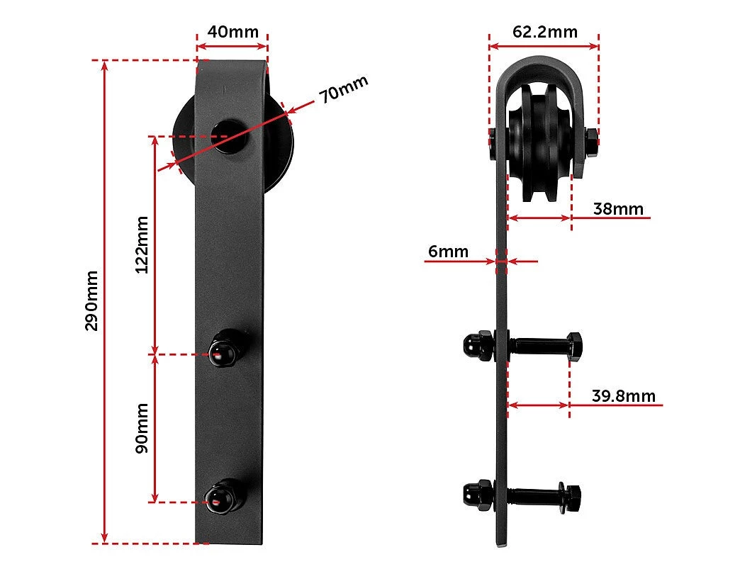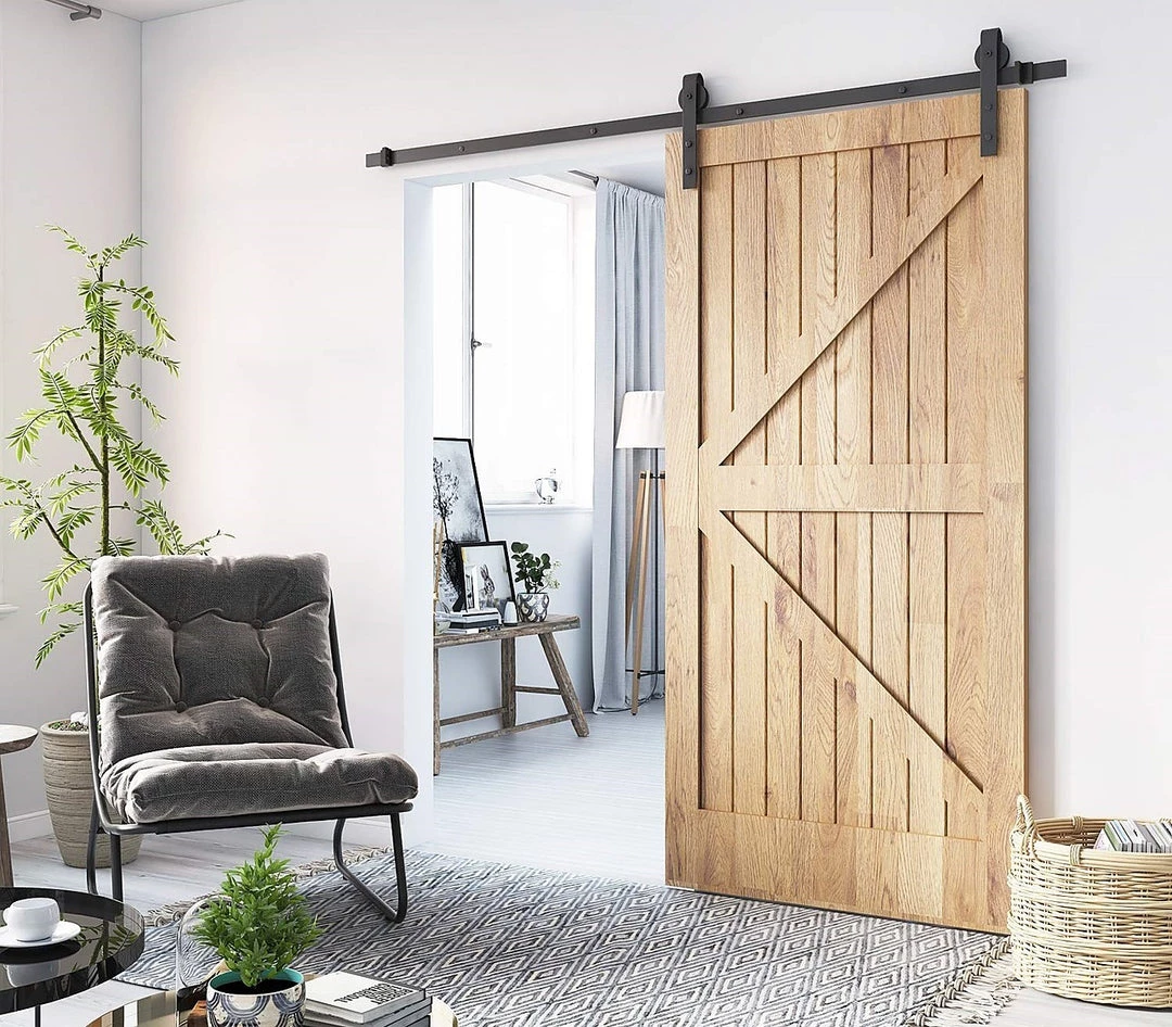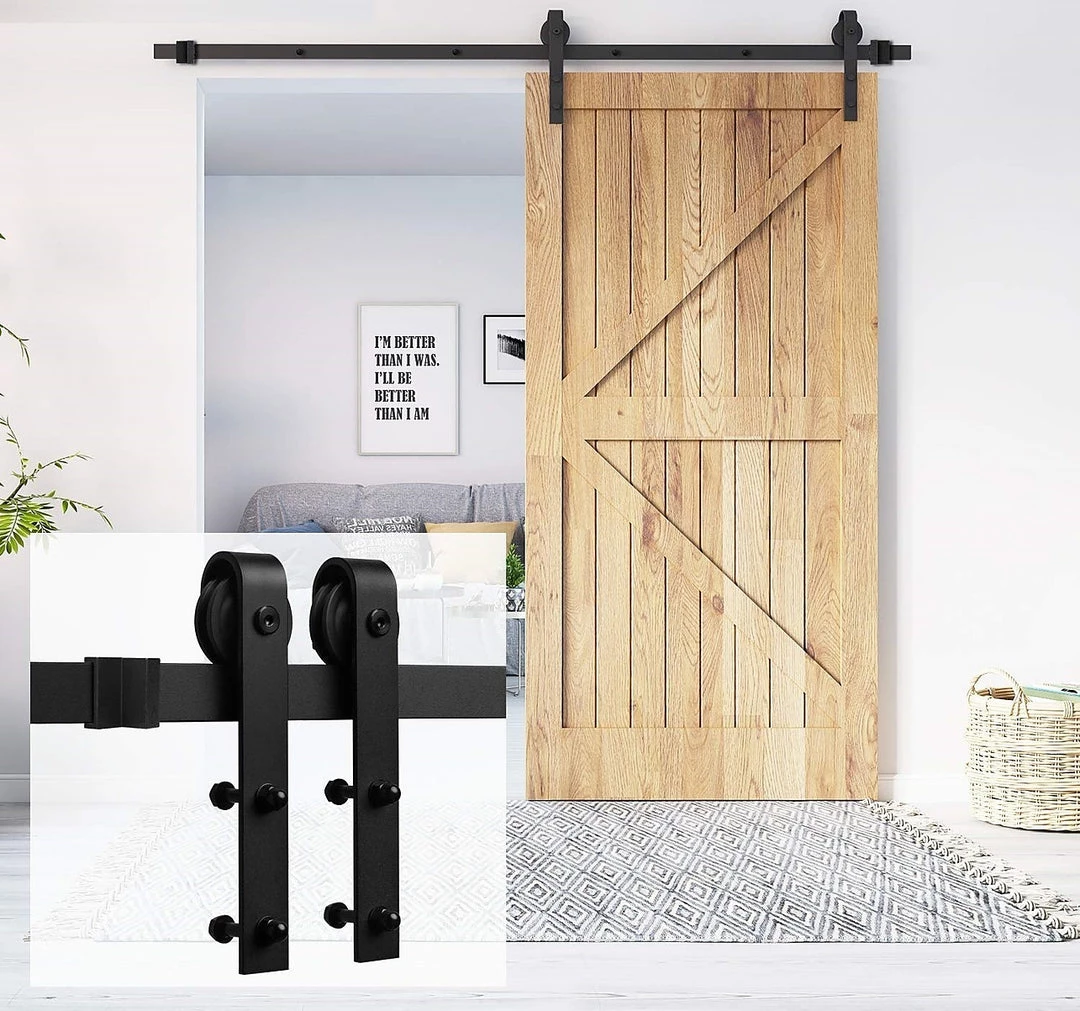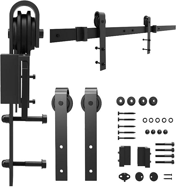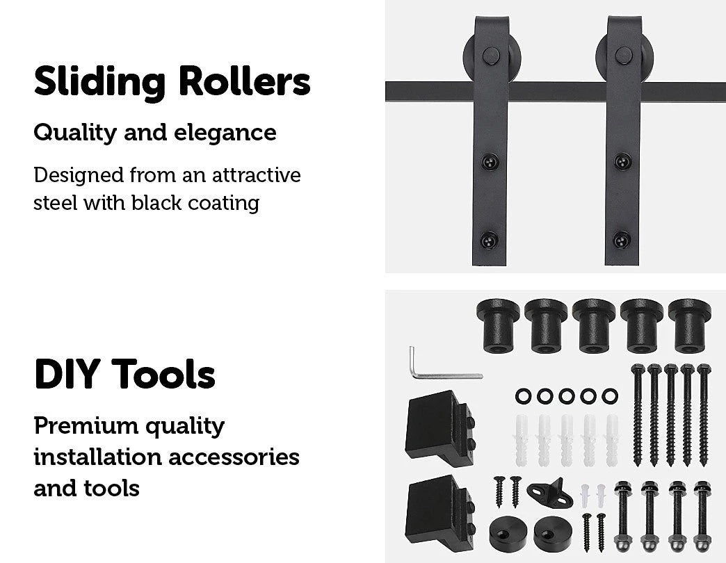 The tracks and pulleys are sturdy and durable. Crafted from high-strength industrial-grade metal, they can handle up to 160 kg loads. Fitting doors from 3.5 – 4.5cm thick, this hardware works equally well in exterior settings, such as stables and barns, thanks to its rust-resistant track. Two anti-jump disks keep the roller on the rail, while an upside-down, T-shaped guide keeps the bottom of the door from swinging outward or inward.  It’s quiet to operate, and you can install it on a wide variety of walls. Give your home a little touch of country. Order your barn door hardware today!