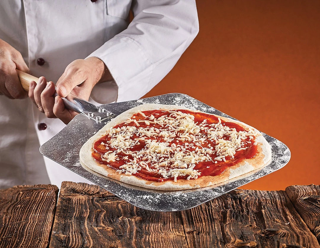 An aluminium head makes it lightweight, so it’s easy to manoeuvre. A natural wood handle provides an excellent grip. A long, wide head makes it perfect to slide under those delicious pizzas for a safe and mess-free serve every time.Â