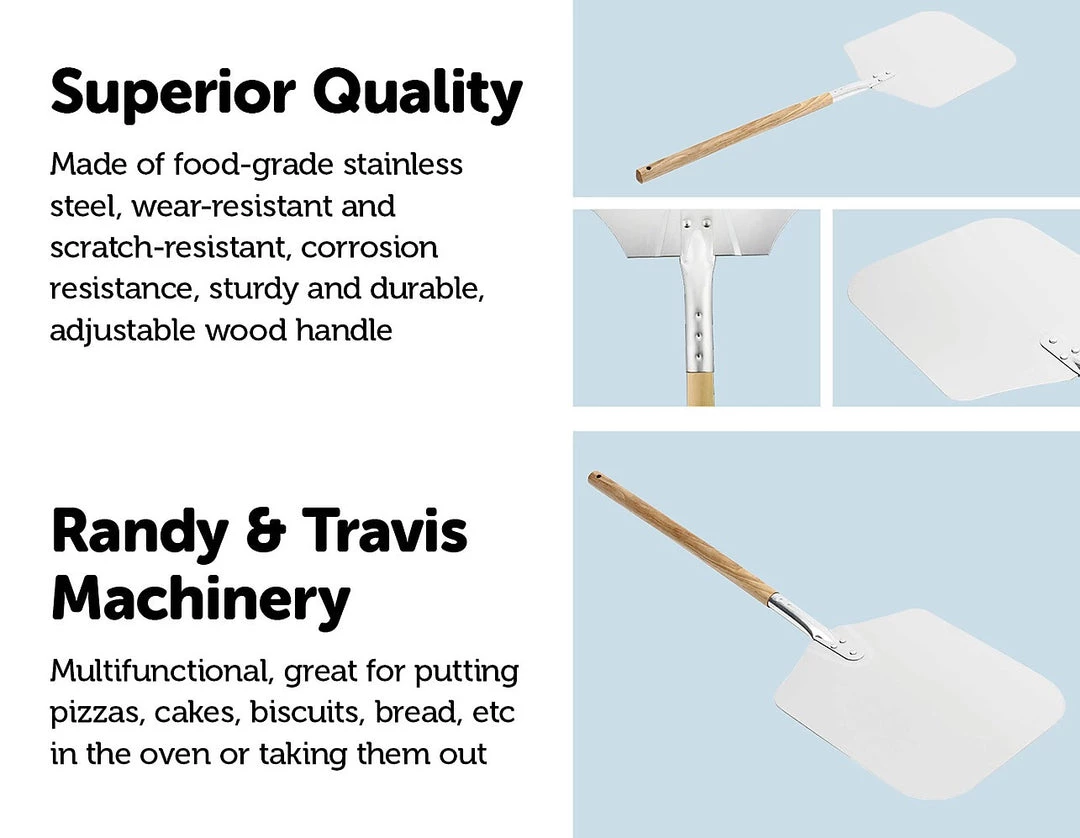 Embrace your inner pizza chef with this professional grade pizza oven peel paddle from Randy & Travis Machinery. Extra long to reach into large brick wood-fired ovens, just like the pros do. Create gourmet pizzas with perfect crusts every time.