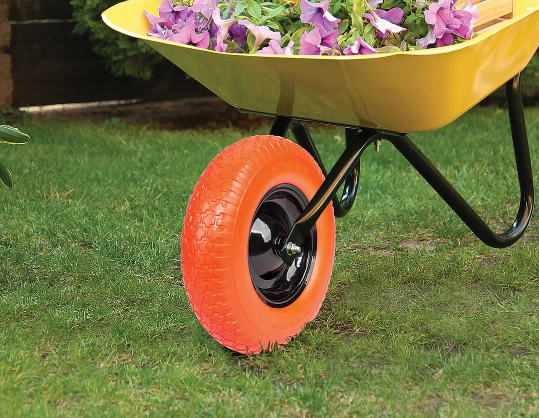 With this tire’s solid polyurethane foam core, a durable steel rim with steel bearings, you won’t need an air compressor or a manual air pump. There’ll be no more flats—so you can haul soil and sod back and forth as you plant, tend to, and harvest your garden.
