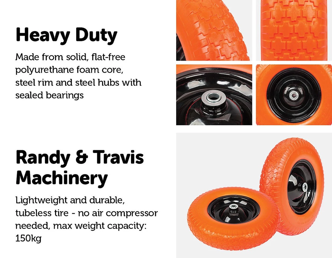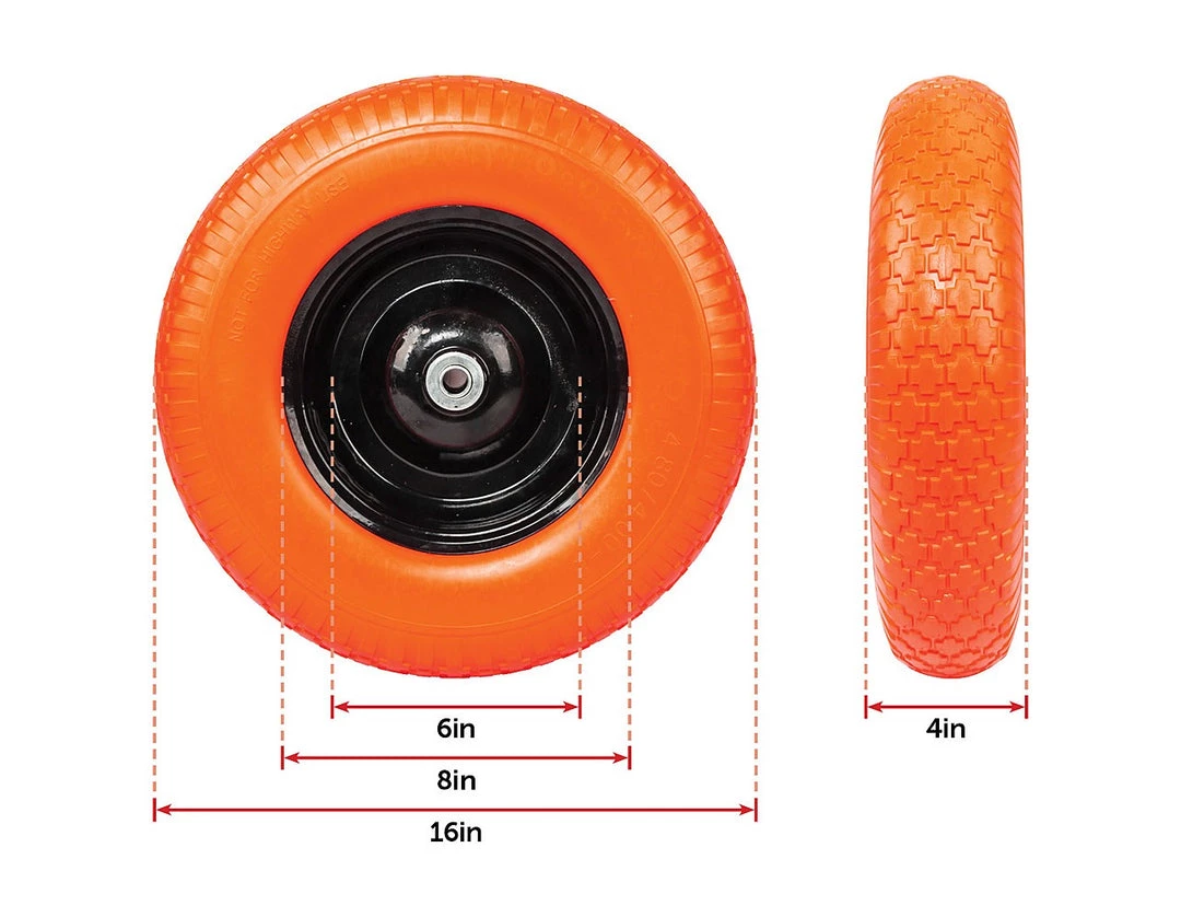 Tired of constantly pumping air into your wheelbarrow tire? If you have better things to do with your time than filling your tires with air, you need this 16-inch flat-free wheelbarrow tire from Randy & Travis Machinery. The gardening season will be in full swing before you know it, so make your life easier with this tire.