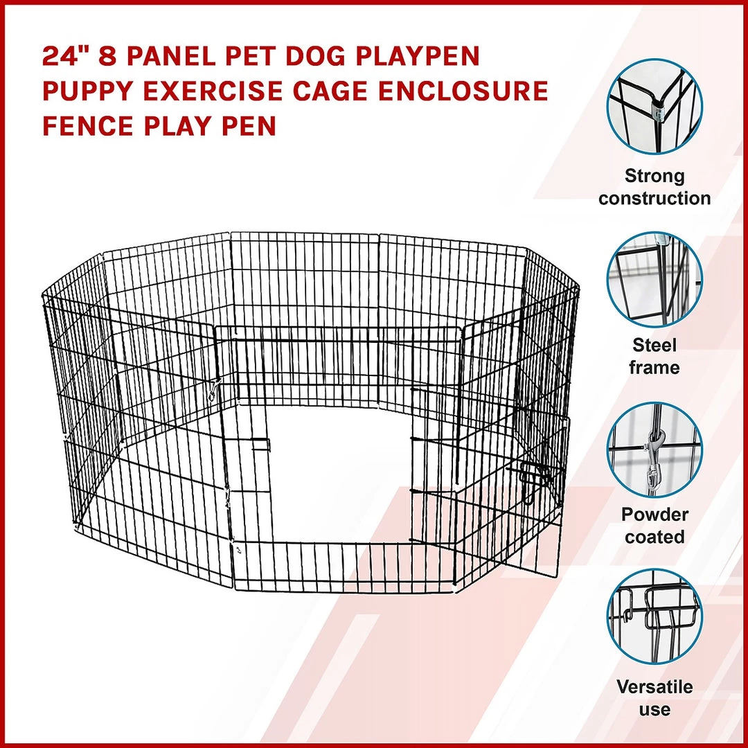 This pet playpen is easy to install and easy to fold away for storage. With a bolt latch on the access door, two locks, and round edges, your furry friend will stay safe and secure. At 24 inches in height, it works with small dogs and puppies, as well as small kittens, guinea pigs, ducks, rabbits, and other small pets that aren’t good climbers. Crafted from powder-coated steel, it’s built to last for years, even with everyday use. Give your pet a zone of its own with a special place to play. Get your pet playpen today!