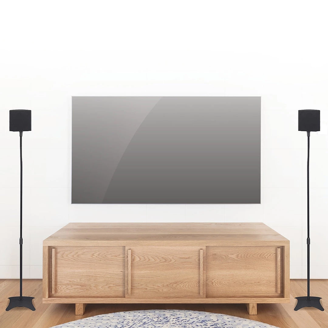 Don’t let their slender profile fool you, though. Underneath those slim lines lie premium-quality construction and a sturdy steel double base, providing stability and durability for years of use. Not only are they the ideal choice for mounting surround sound satellite speakers, but they also work equally well for a wide range of other small speakers, thanks to the stand heads’ multiple mounting holes. They adjust to a variety of heights from 75 cm to 112 cm, allowing you to customise your sound experience. Easy to install, they’re the perfect choice for both office and home. Order yours today!