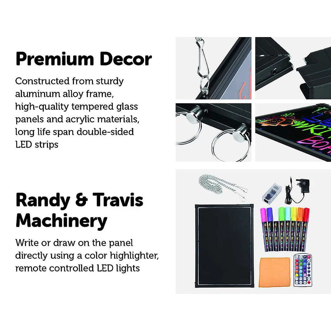 Your child will have so much fun with this LED writing and drawing board that she won’t even realise that she’s learning! This light-up board by Randy & Travis Machinery provides your child with hours of play. The first time your child sees his drawings and pictures light up, he’ll think it’s sheer magic. With several modes of lighting – colour-changing, static, or flashing – this board has possibilities well beyond a child’s toy. Restaurants can use it to attract attention to their special of the day, retailers can set it up in their shop windows to announce a flash sale, and adults can use it as a relaxing, creative way to relieve stress at the end of a tough day. Executives, teachers, and salespersons can even use it as a colourful visual aid when they give presentations.
