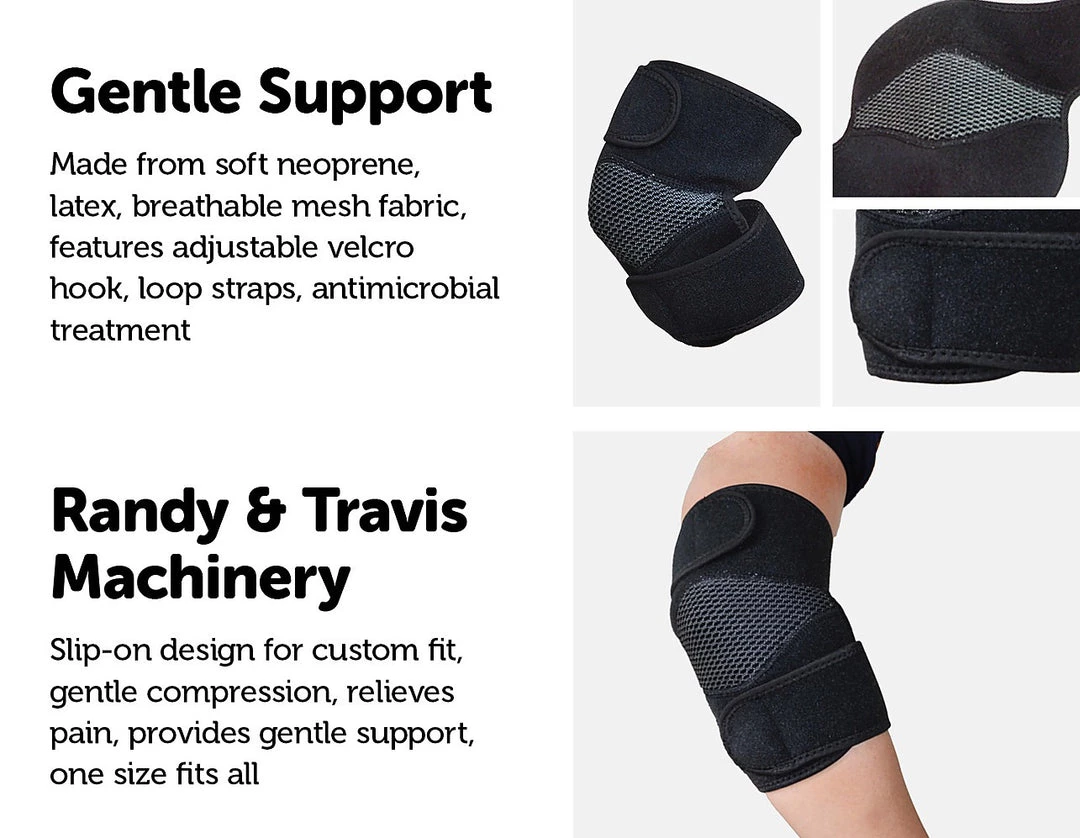 Don’t let tennis elbow—or any other elbow injury—put a damper on your active life. With Randy & Travis Machinery’s adjustable elbow brace, its gentle compression improving circulation to your weak, sore, or injured elbow, relieving pain and providing needed support.
