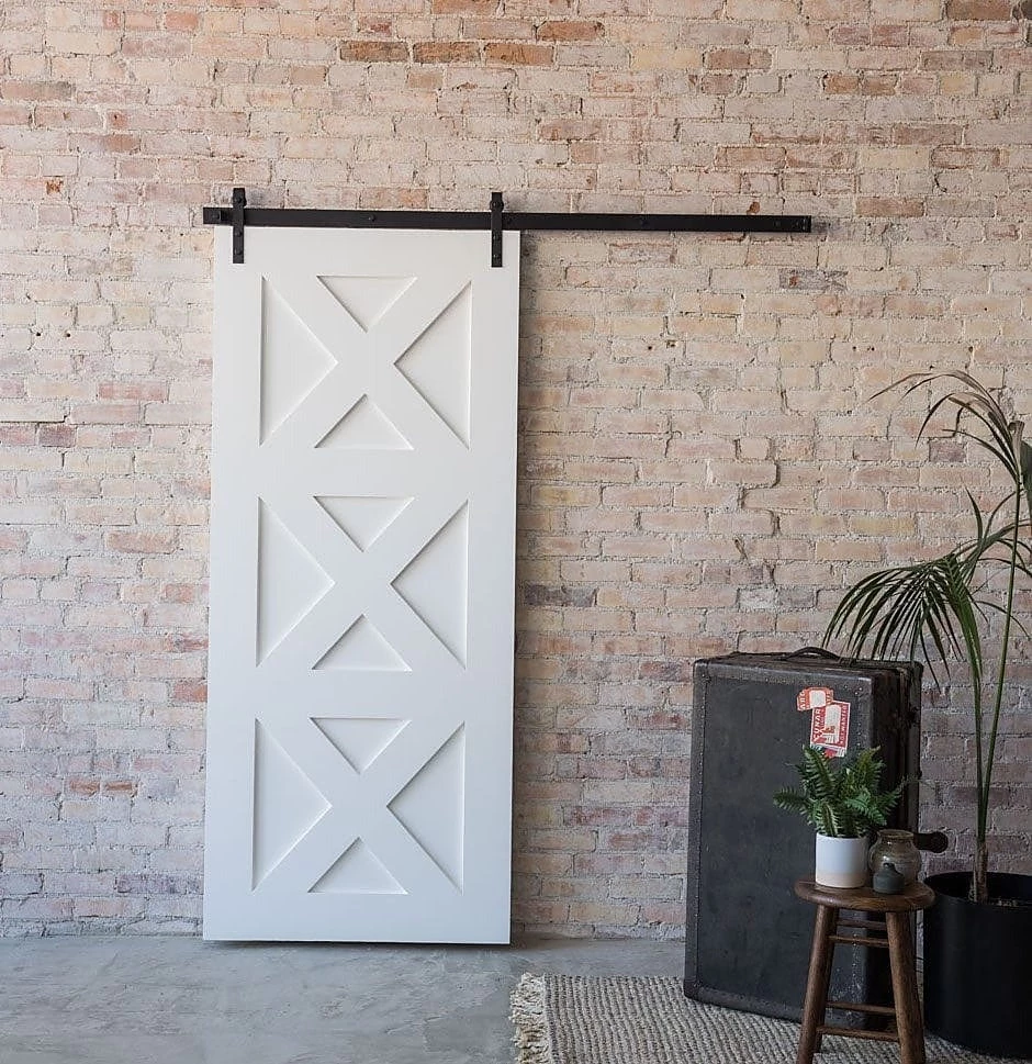 The door hardware is as strong and durable as it is beautiful. It is constructed from high quality steel and will withstand the test of time. Your package comes with all the hardware necessary for hanging the door.