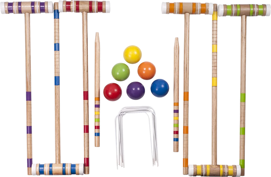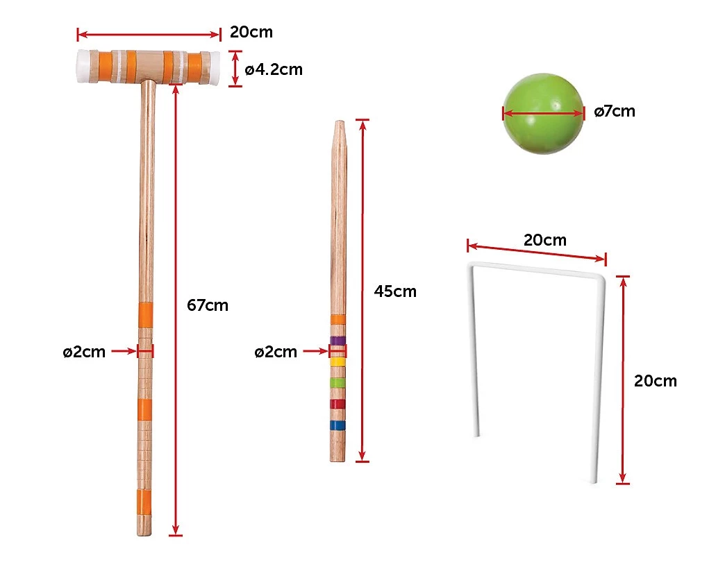 - 6 colour-coded mallets, handles and balls