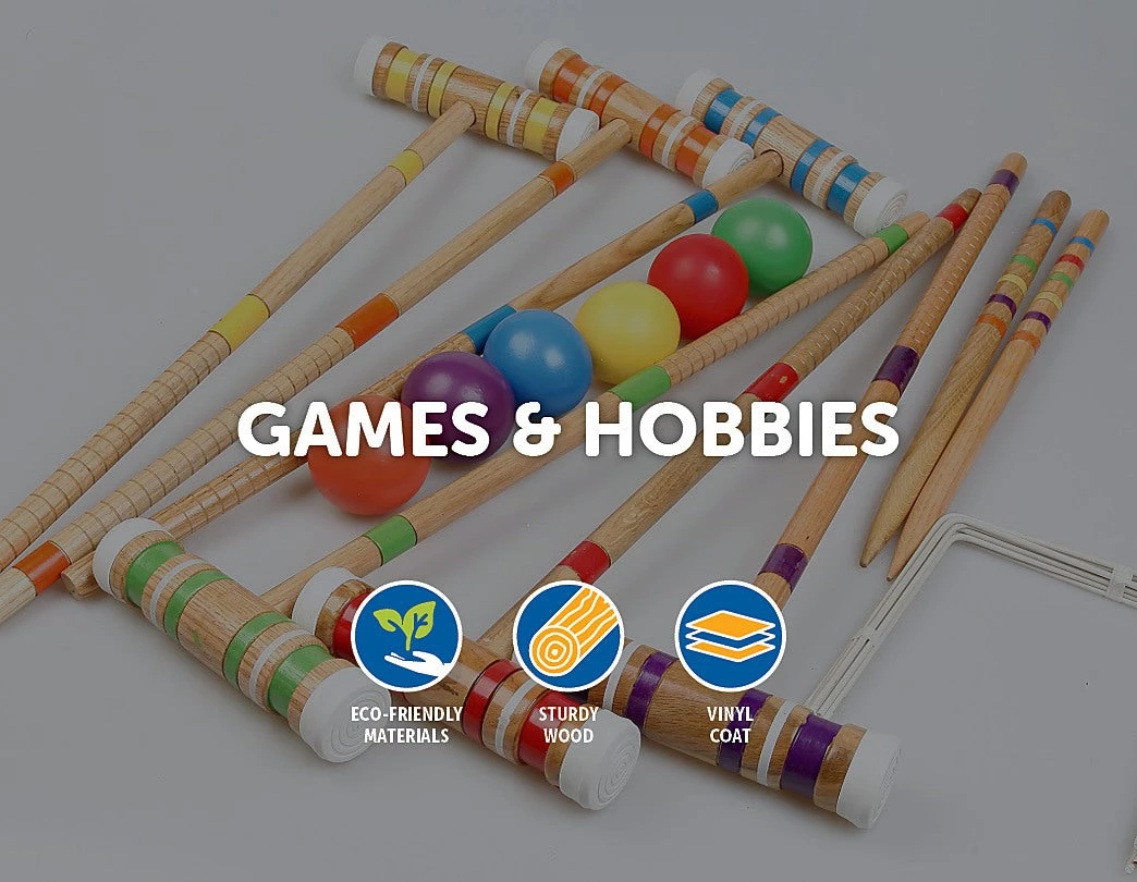 This platinum set includes six (6) different, colour coded mallets and balls and six vinyl coated steel wicket hoops – all you’ll ever need to play the game as you knock your respective balls through the hoops to score a win!