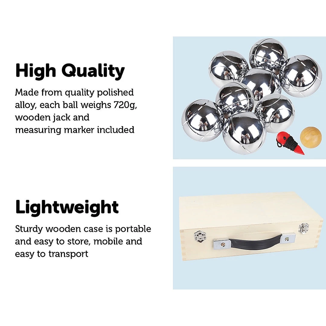 This set contains all you’ll ever need to play the game with, including: eight boules, the jack with a measuring system to determine the winner, a detailed rule book, all contained within an elegant wooden case that’s perfect for display at home and for keeping the game safe wherever you decide to take it, with locations ranging from home, to the beach and at the park, the simplicity and versatility of the game is what makes it unique!