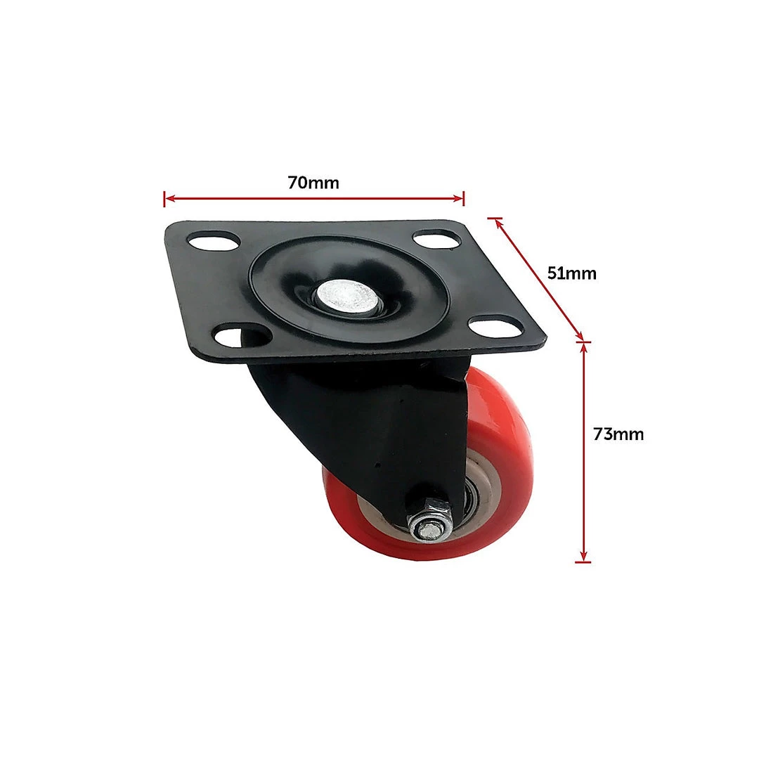 Looking for castor wheels that can handle even the heaviest loads? These heavy-duty two-inch polyurethane castor wheels from Randy & Travis Machinery can hold up under even the toughest use. A set of eight swivel-capable wheels, four of them with an inbuilt brake, serve a wide range of uses, from making your office furniture more mobile to making it easier to move your heavy home workbench, even if you’re on the petite side.